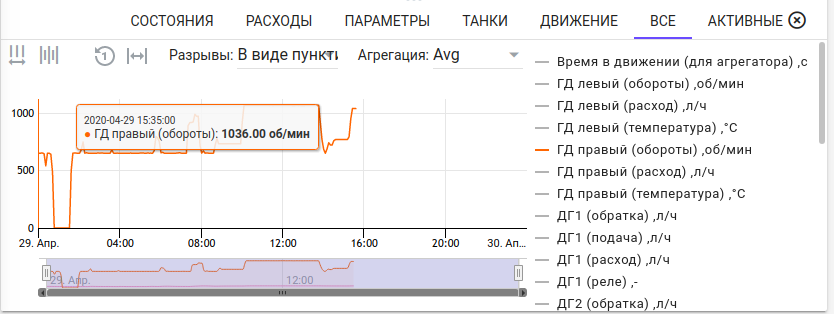 Рисунок 11. График оборотов главного двигателя за выбранный период мониторинга