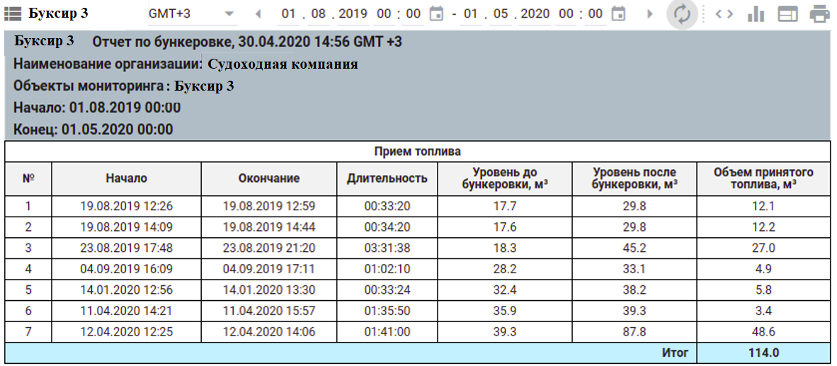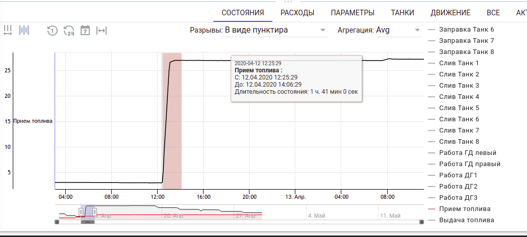 Рисунок 12. График уровня топлива с отображением состояния бункеровки