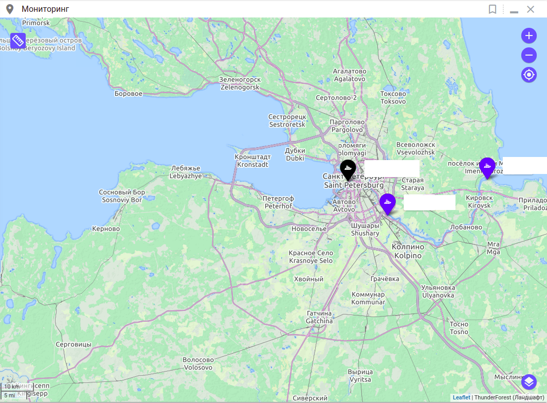 Рисунок 2. Мониторинг - карта с указанием местоположения выбранных объектов мониторинга