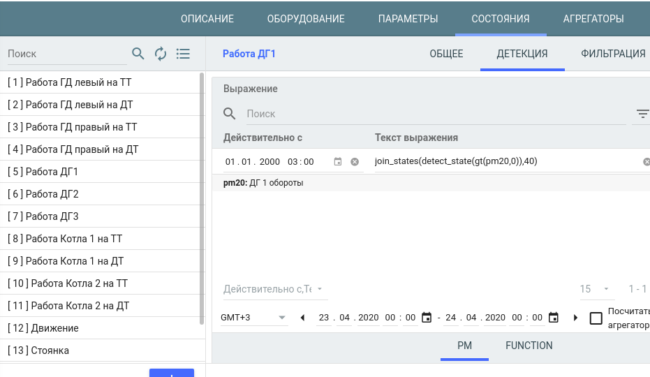 Рисунок 6. Описание состояний. Описание состояния работы ДГ1 на основании данных о количестве оборотов двигателя