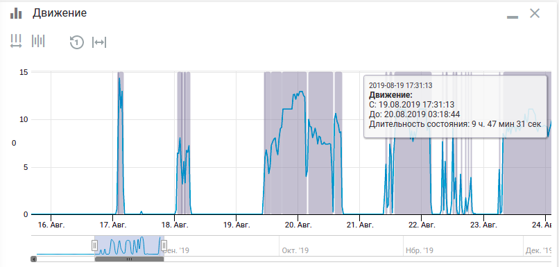Рисунок 7. Отображение состояния движения на графике, определяется начало движения, окончание и длительность